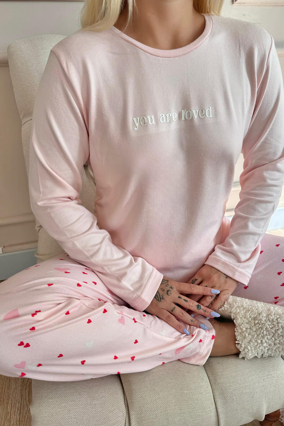 Gelince Haber VerSoğuk havalarda sıcak kalmayı sevenler için tasarlanan Pijamaevi Kadın Açık Pembe Kalp Desenli Termal Pijama Takımı, hem şık hem de konforlu bir uyku deneyimi sunar. Üst kısmında "You Are Loved" nakış detayı ile tasarlanan bu pijama takımı, zarif pembe kalp desenli alt pijamasıyla göz alıcıdır. Yumuşak termal kumaşı, vücut ısınızı koruyarak soğuk günlerde sizi sıcak tutar ve nefes alabilir yapısı sayesinde gün boyu rahatlık sağlar.