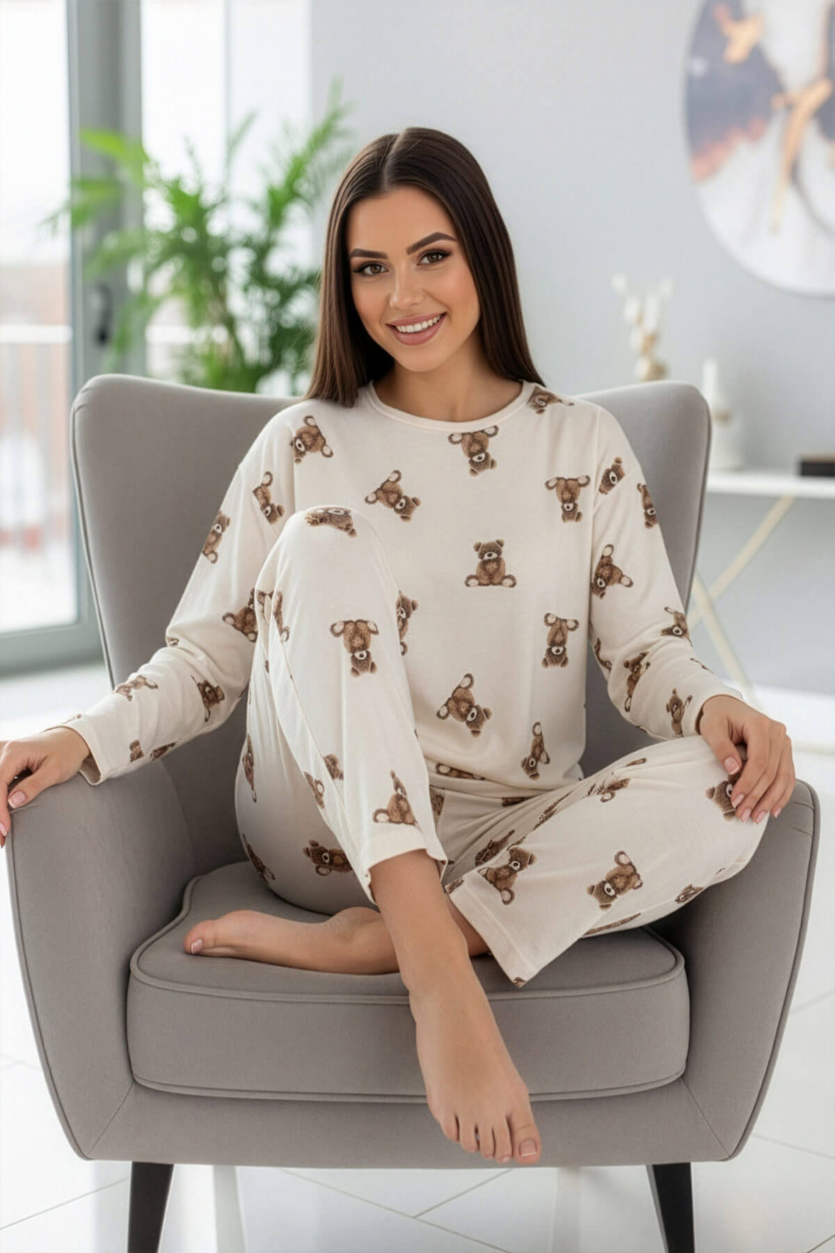 Doğal bambu lifleri ve viskoz karışımı sayesinde ciltle temasında serin, yumuşak ve akışkan bir his sunar. Esnek yapısı vücudu sıkmadan sarar, hareket özgürlüğü sağlar. Sevimli desenleriyle sıcak ve samimi bir stil oluşturur; evde şıklığı sade bir şekilde tamamlar.