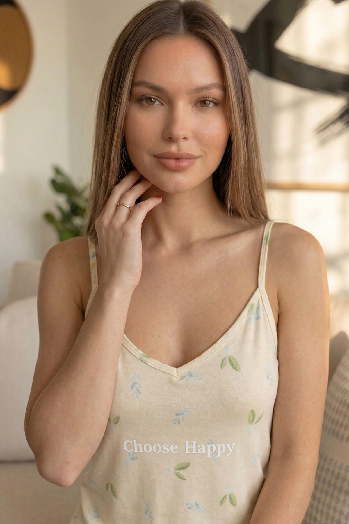 Choose Happy Baskılı Ip Askılı Örme Kadın Pijama Takımı - 6