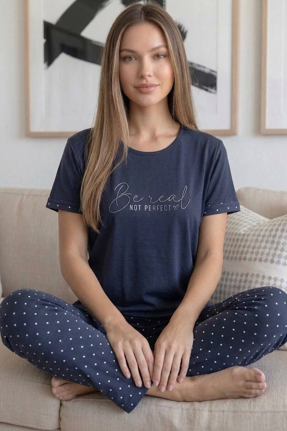 Günlük konforu ve şıklığı bir arada sunan kadın pijama takımı, yaz aylarında terletmeyen yapısı ve nefes alabilen bambu viskon kumaşı ile öne çıkar. Hafif ve esnek dokusu sayesinde gün boyu rahatlık sağlarken, uyku sırasında maksimum konfor sunar.