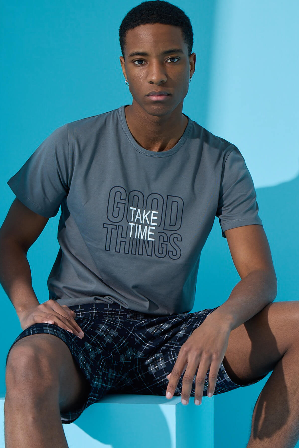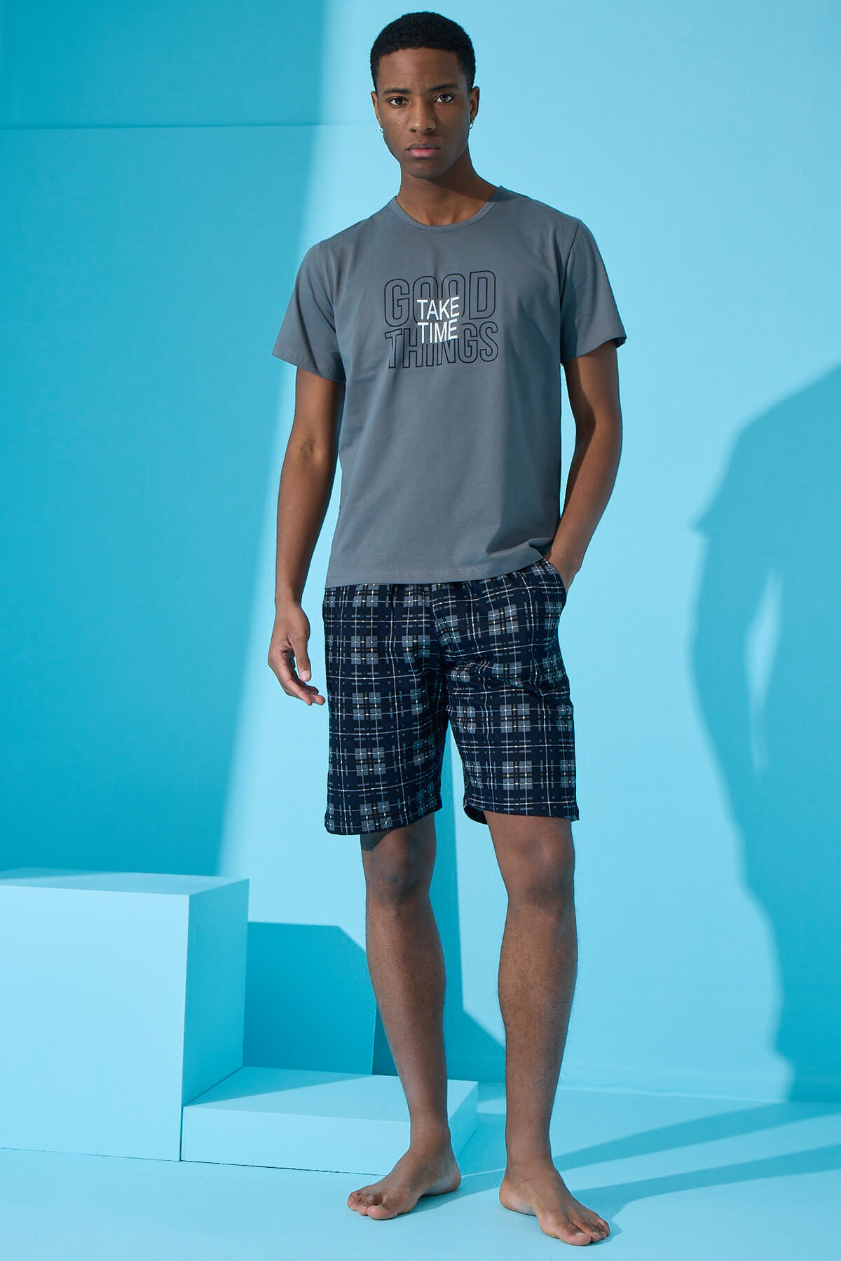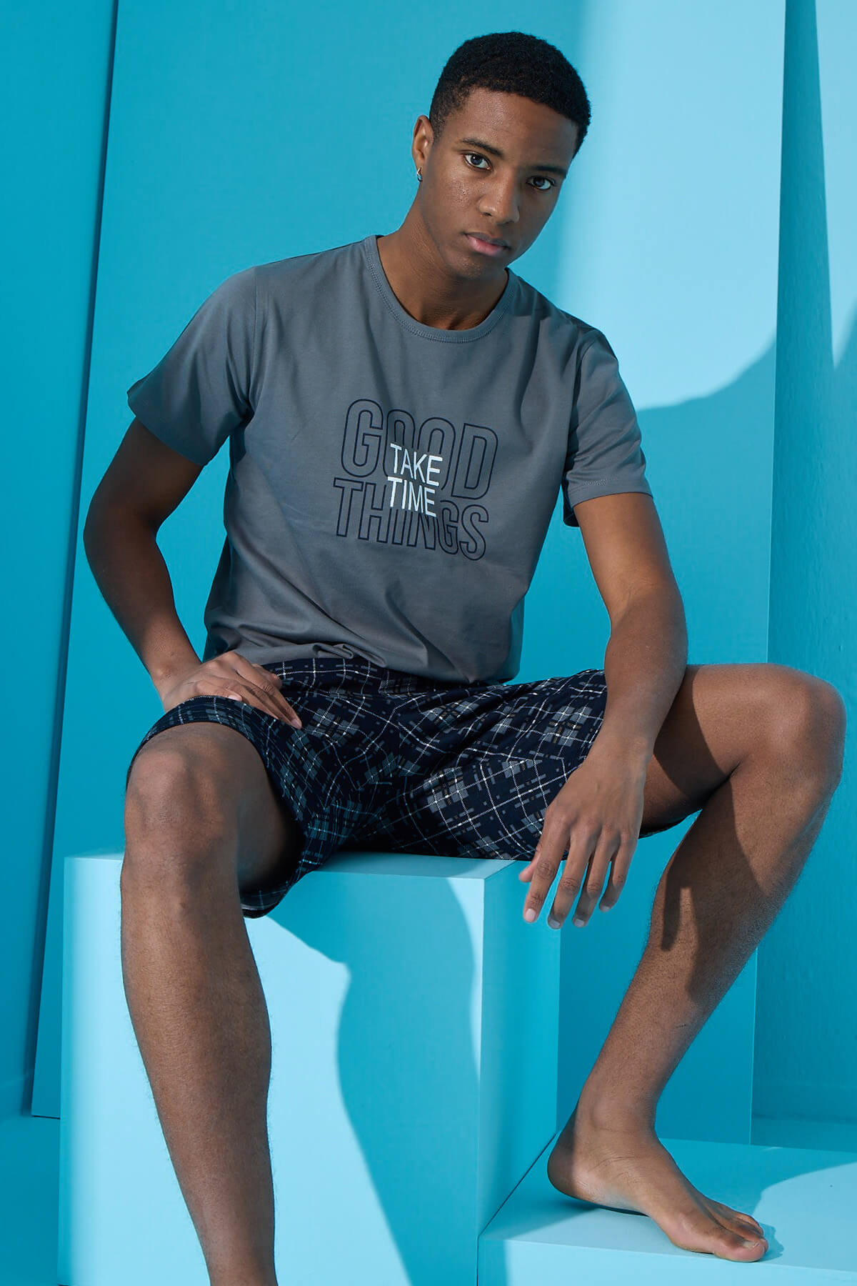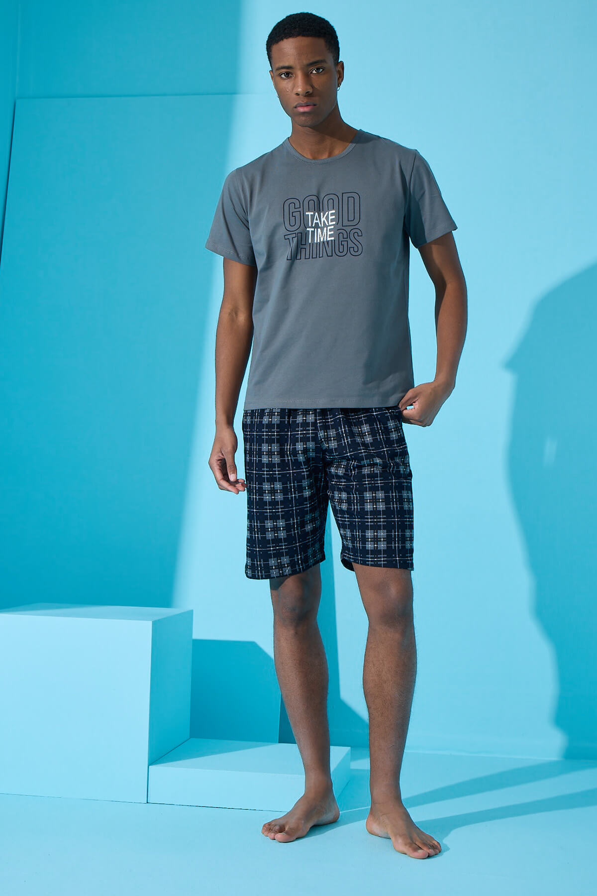 Füme Good Baskılı Şortlu Erkek Pijama Takımı