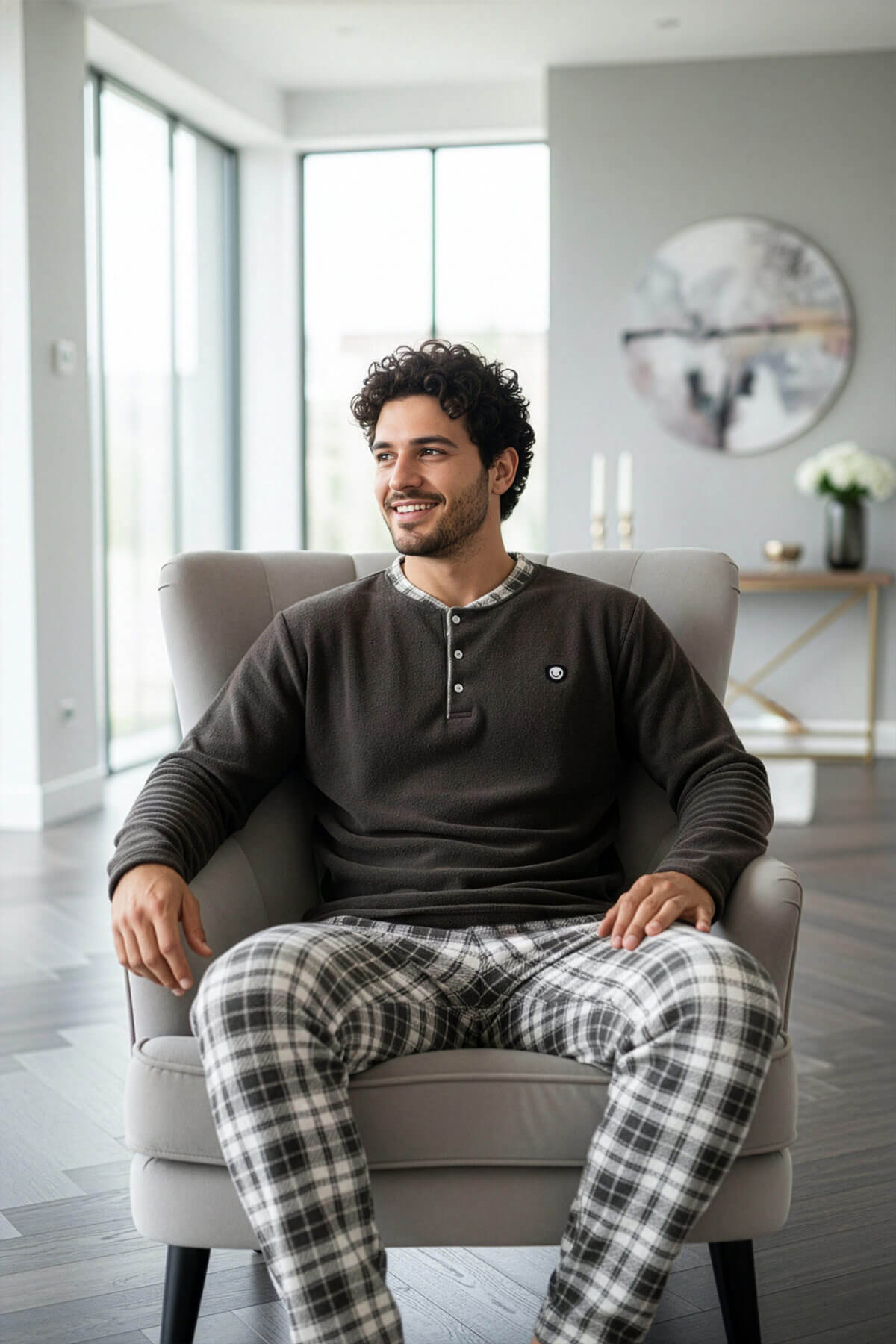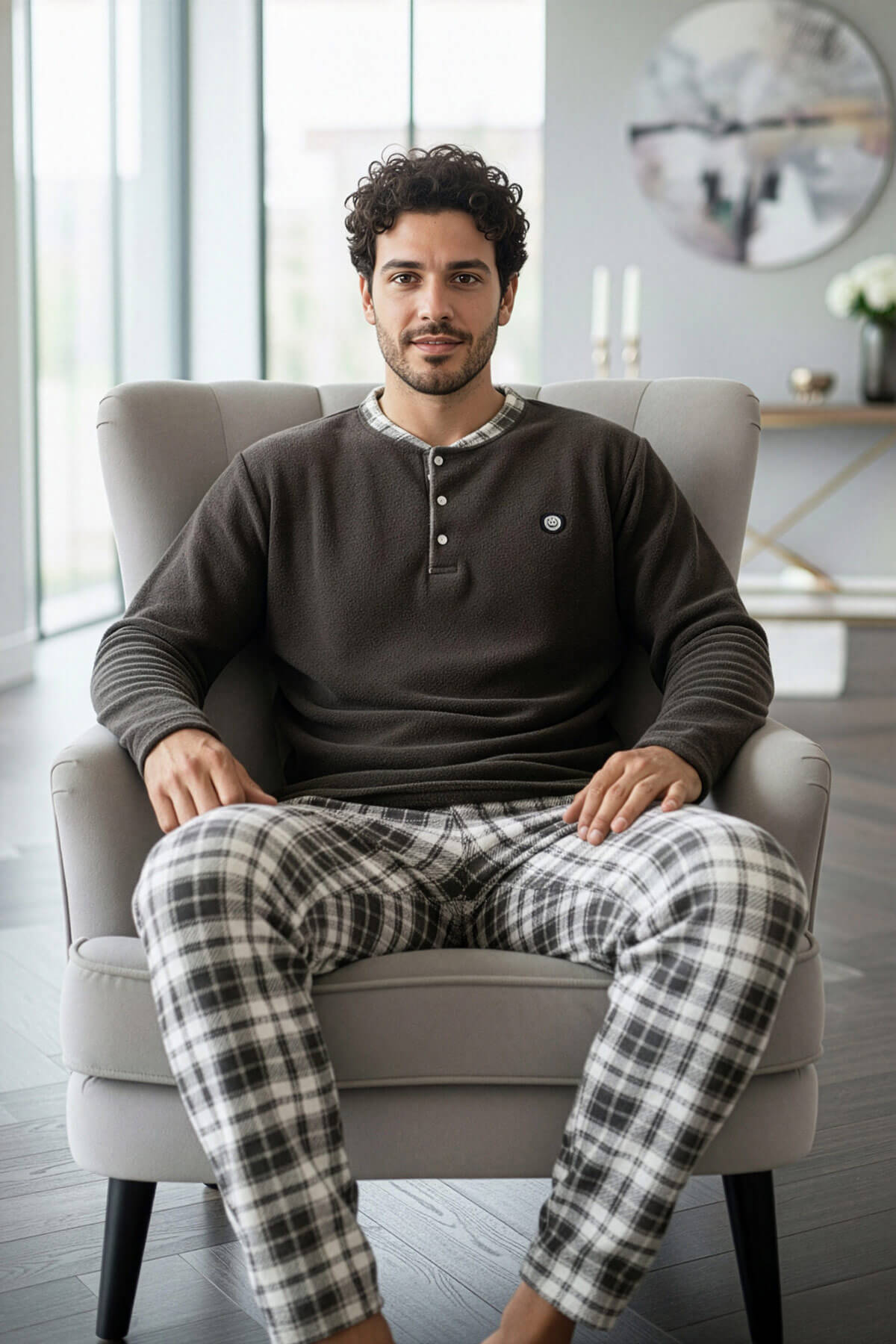 Melanj Siyah Ekose Desenli Polar Erkek Pijama Takımı - Pijamaevi Melanj Siyah Ekose Desenli Polar Erkek Pijama Takımı - Pijamaevi (1) İndirimli Ürünler İndirimli Ürünler