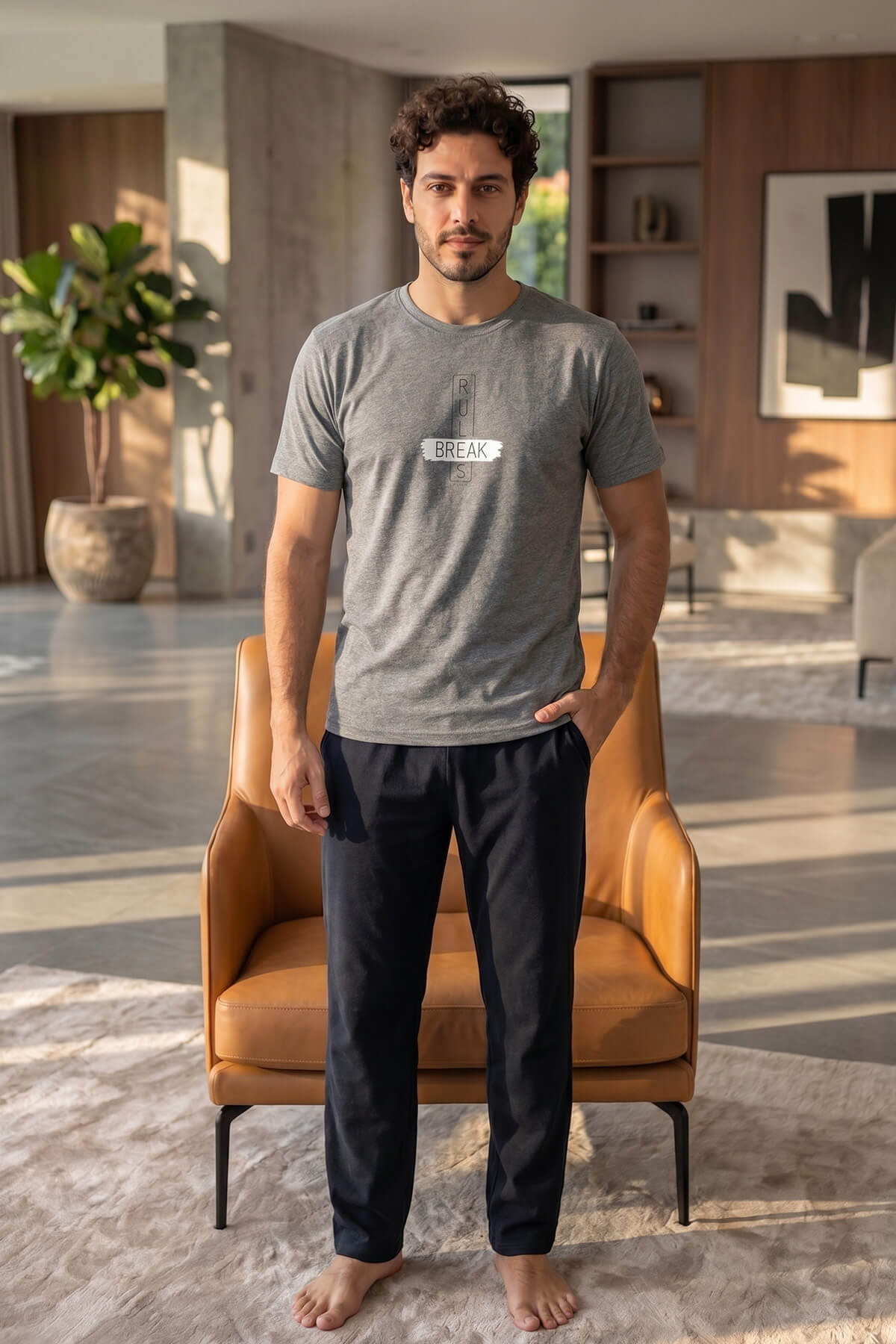 Pamuklu kumaş yapısı sayesinde hava geçirgenliği yüksek olup, yazlık pijama arayan erkekler için ideal bir tercihtir. Ev giyimi ve günlük kullanımda şıklık ve rahatlığı bir arada sunar.