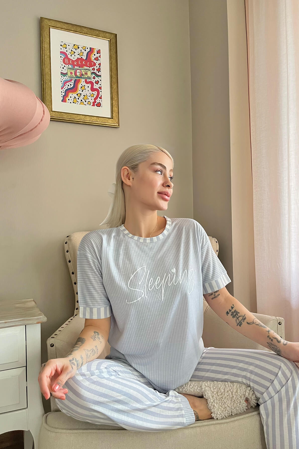 Pudra Positive Desenli Bambu Kısa Kol Kadın Pijama Takımı - Pijamaevi Pudra Positive Desenli Bambu Kısa Kol Kadın Pijama Takımı - Pijamaevi (1) İndirimli Ürünler İndirimli Ürünler