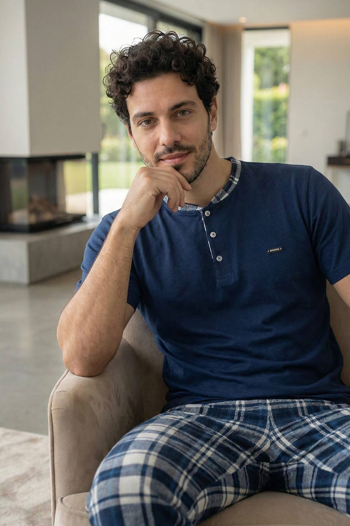 Regular Fit kalıbı sayesinde vücuda yapışmaz, hareket özgürlüğü sunar. Üst parçada yer alan modern ve minimal tasarım detayları, ürüne sade ama şık bir görünüm kazandırırken; ekose desenli alt parça ile dengeli ve stil sahibi bir ev giyim kombinine dönüşür.