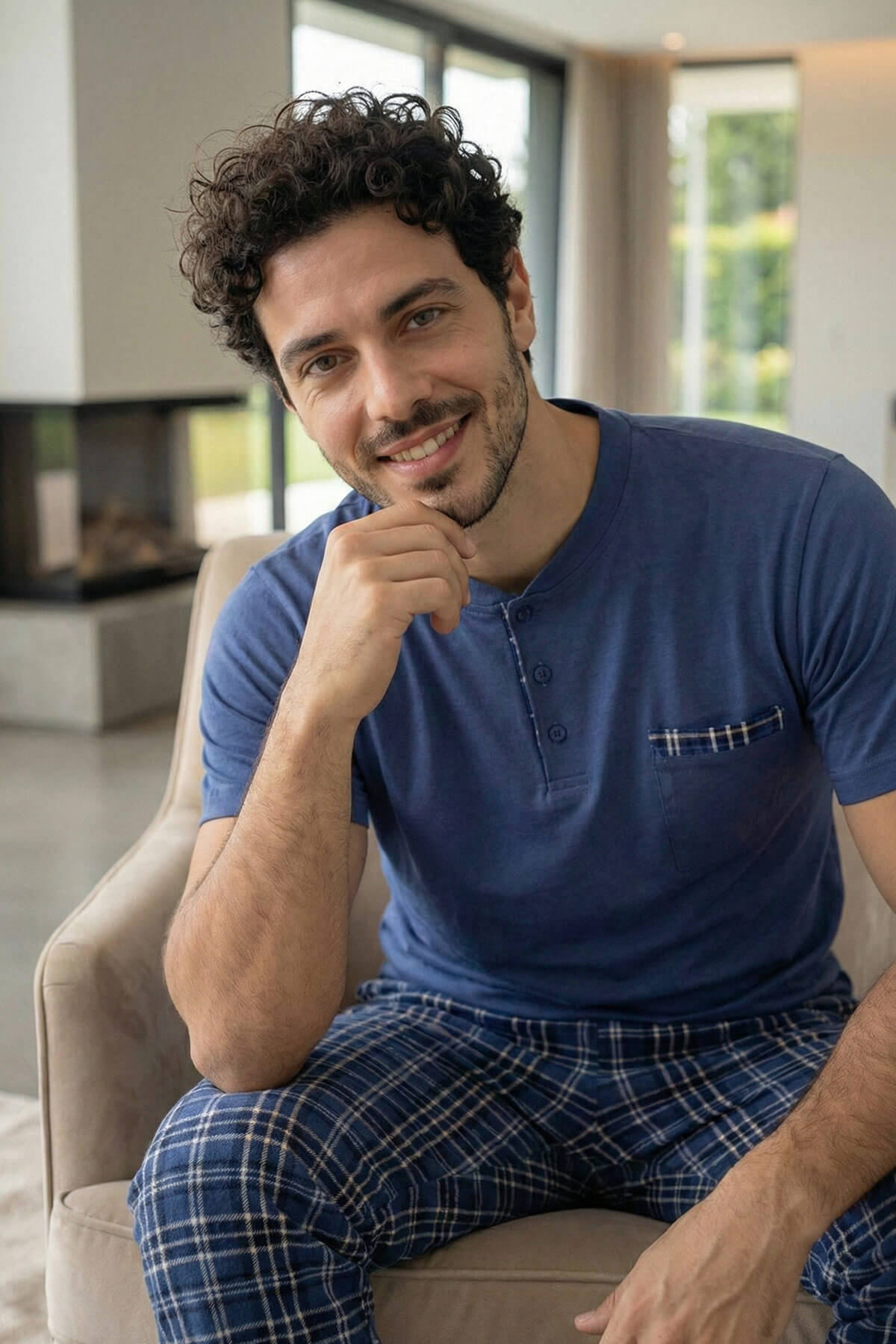 Rahat (Regular Fit) kalıbı ile vücuda yapışmadan doğal bir duruş sağlar, hareket özgürlüğünü maksimum seviyeye çıkarır. Üst parçada yer alan düğmeli yaka detayı ve cep tasarımı ürüne modern ve karakteristik bir görünüm kazandırırken, alt parçadaki desenli yapı ile bütünlüklü ve şık bir stil sunar.