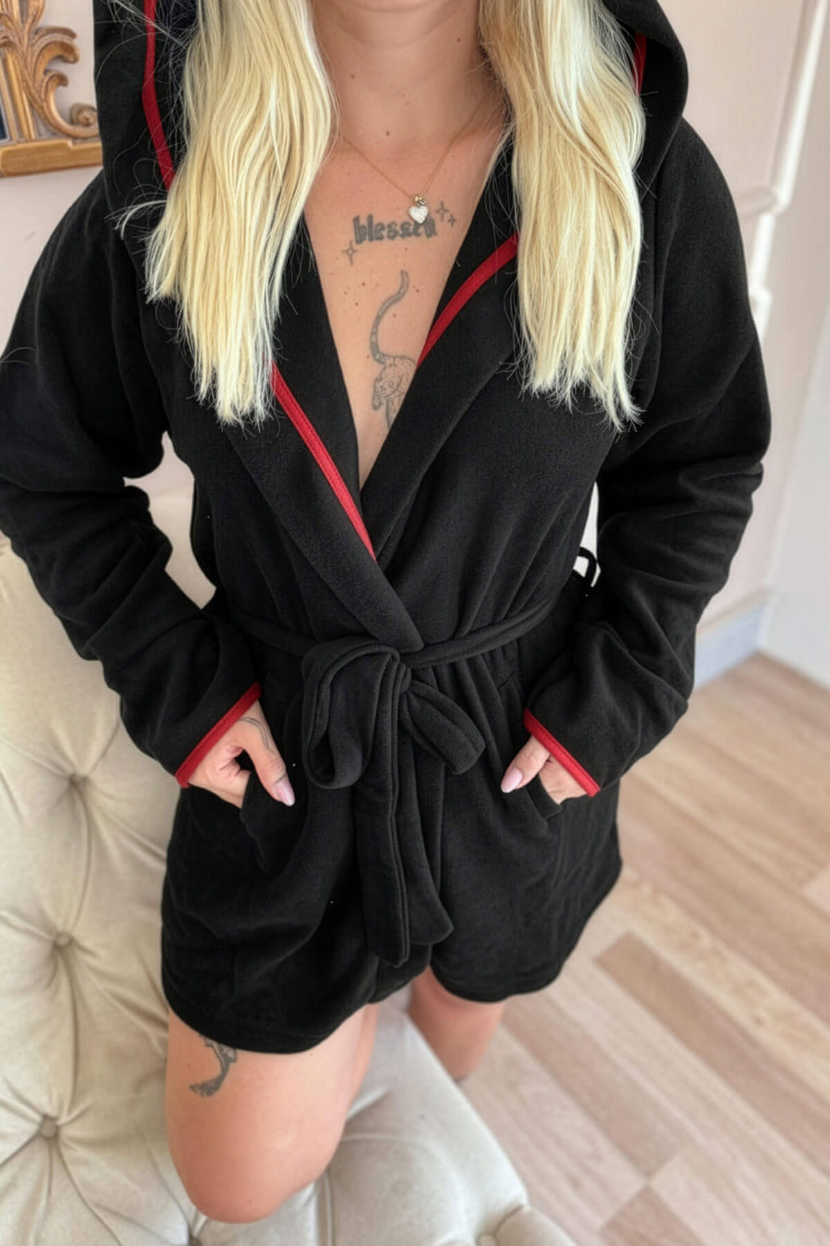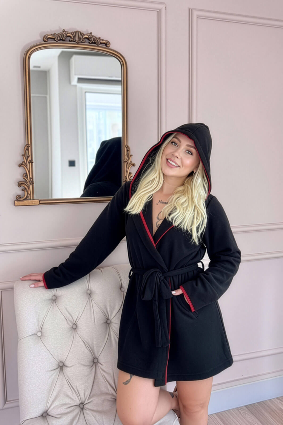Modern kapüşon detayı, ev stilinize sportif bir dokunuş katarken, kuşaklı tasarım vücudunuza uyum sağlar ve şık bir görünüm sunar. Yan cepleriyle pratiklik sağlayan sabahlık, hem evde rahat kullanım hem de sabah/akşam serinliğinde sizi sıcak tutmak için idealdir.