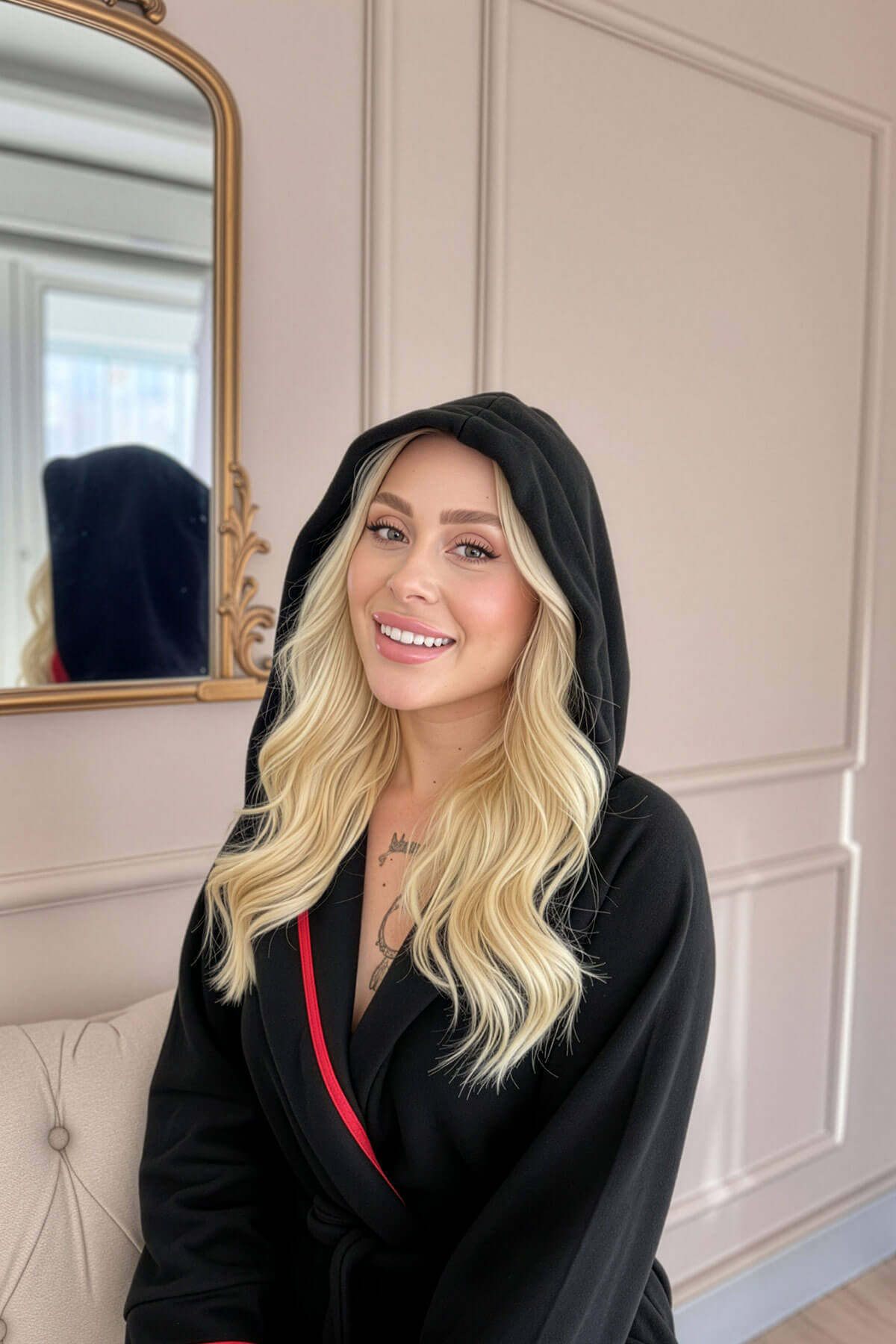 Kapüşonlu polar kadın sabahlık, yumuşacık dokusu ve sıcak tutan kumaşıyla özellikle sonbahar ve kış aylarında vazgeçilmez bir parçanız olacak. %100 polar kumaştan ( %95 polyester – %5 elastan ) üretilen bu sabahlık, hafif yapısına rağmen yüksek ısı yalıtımı sağlar ve gün boyu rahatlık sunar.