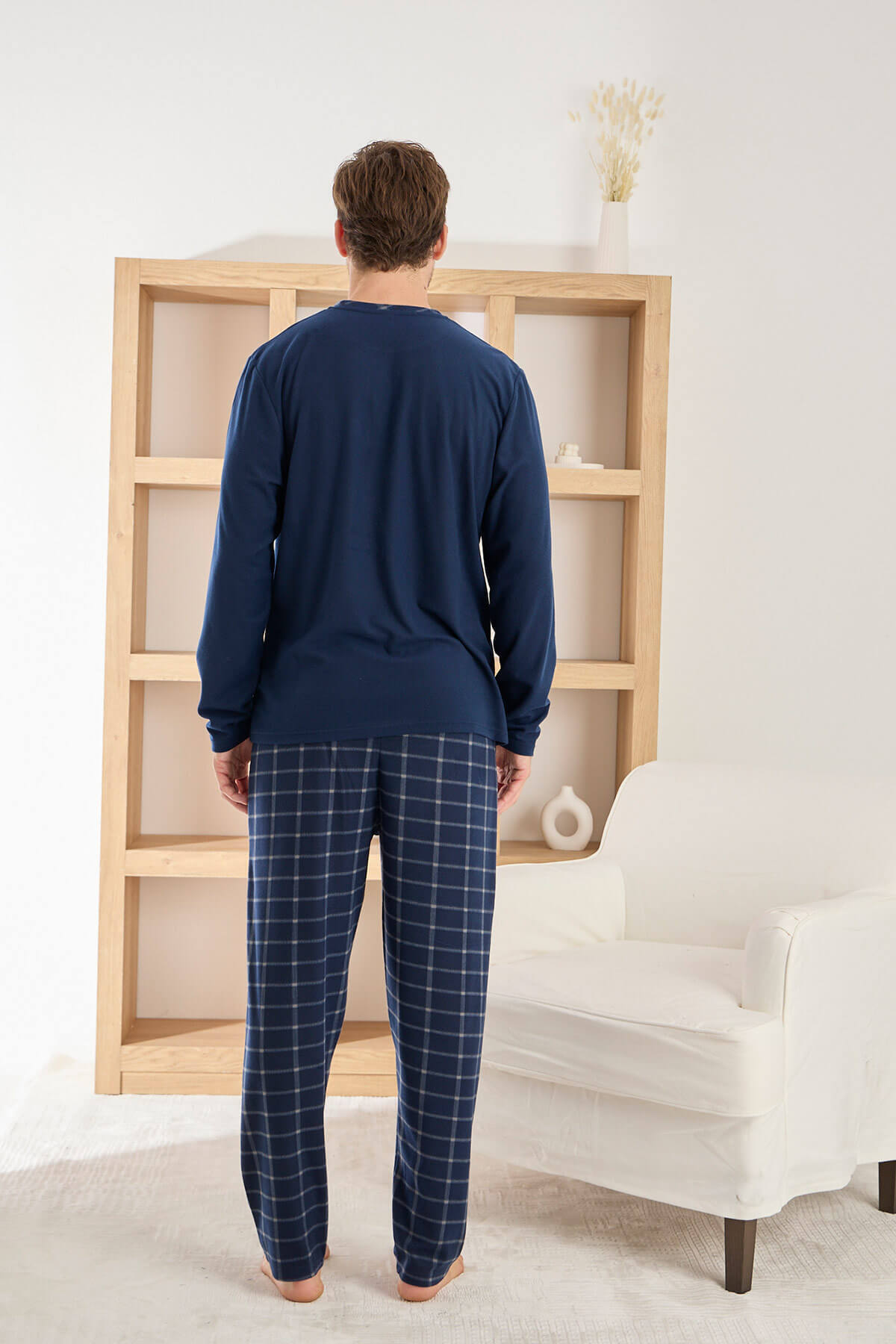 Lacivert Ekru Ekose Desenli Elegant Erkek Pijama Takımı
