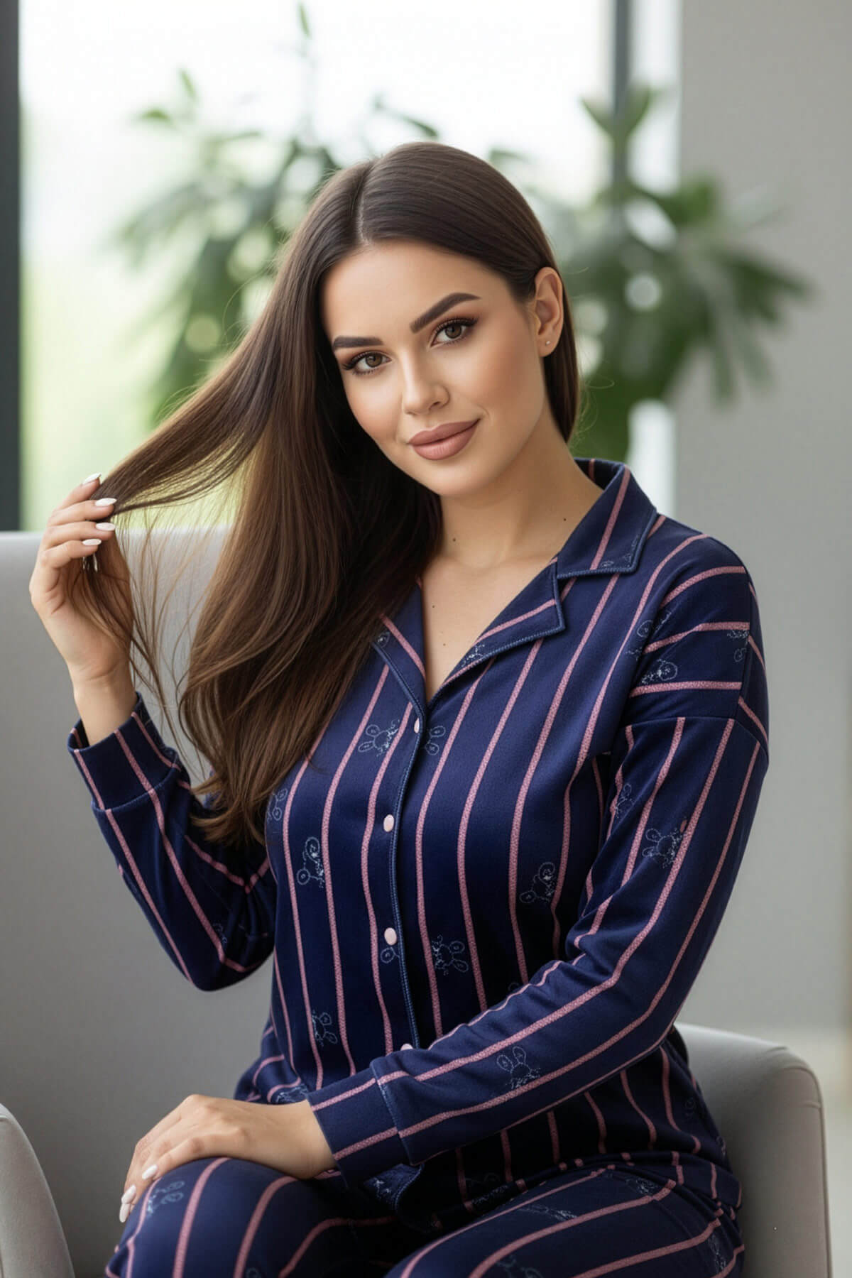 Evde geçirilen zamanları daha keyifli hale getiren bu pijama takımı; uyku, dinlenme ve gün boyu ev kullanımı için idealdir. Hem rahatına düşkün hem de ev şıklığından vazgeçmeyen kadınlar için özel olarak tasarlanmıştır.