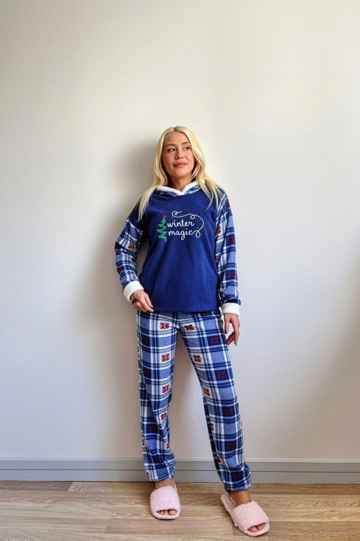 Üstü peluş kapşonlu, altı polar kadın pijama takımı, soğuk havalarda hem rahatlığı hem de şıklığı bir arada sunuyor. Üst kısmında kullanılan yumuşacık welsoft kumaş, vücut ısısını koruyarak maksimum sıcaklık sağlar. Alt kısmında yer alan polar kumaş ise hafif yapısıyla rahat bir uyku deneyimi sunar. Modern desenleri, canlı renk alternatifleri ve kış temalı sevimli baskılarıyla ev stilinize enerjik bir dokunuş katar. Regular (rahat) kesimi sayesinde gün boyu konforlu hareket imkânı sağlar. Soğuk kış gecelerinde sıcaklığı, rahatlığı ve zarafeti bir araya getiren bu peluş pijama takımı, kadın ev giyim modasının vazgeçilmezlerinden biri olmaya aday.