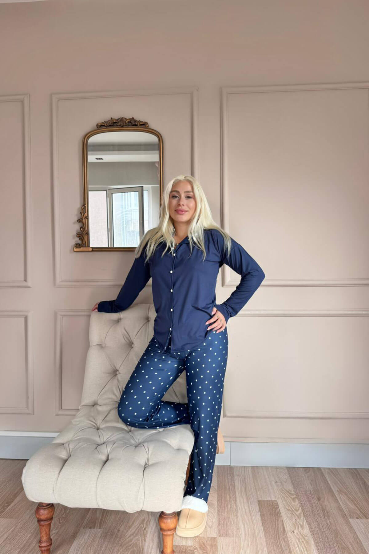 Gelince Haber VerEvde konfor ve şıklığı bir araya getiren Yumoş Kadın Pijama Takımı, ipeksi yumuşak dokusu ve şık tasarımıyla her anınızı daha özel kılıyor. %30 Bambu, %60 Viskon, %10 Elastan kumaş karışımı sayesinde hafif, nefes alabilir ve esnek yapıya sahiptir, böylece vücudunuza mükemmel uyum sağlar. Uzun kollu önden düğmeli gömlek yaka üst ve tam boy pijama altı ile hem klasik hem de modern bir stil sunar.