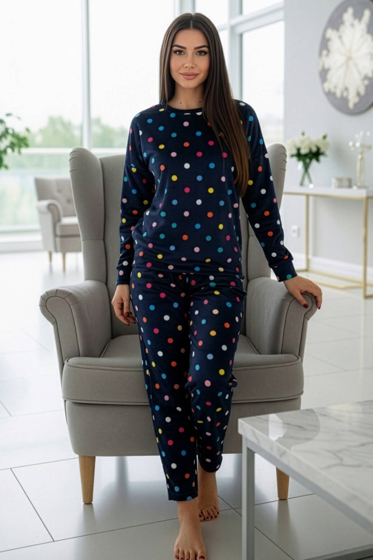 Lacivert Puan Desenli Veloura Soft Kadın Pijama Takımı