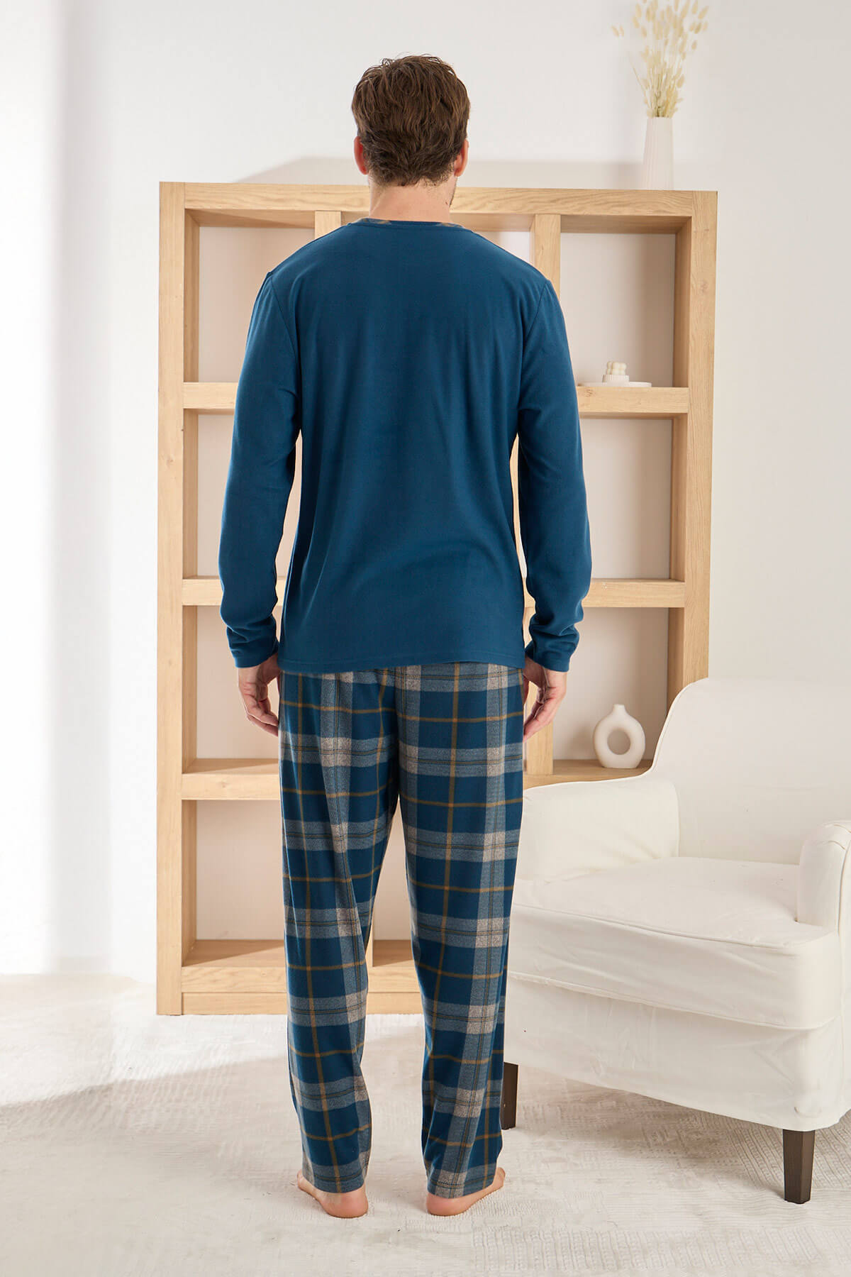 Lacivert Yeşil Ekose Desenli Elegant Erkek Pijama Takımı