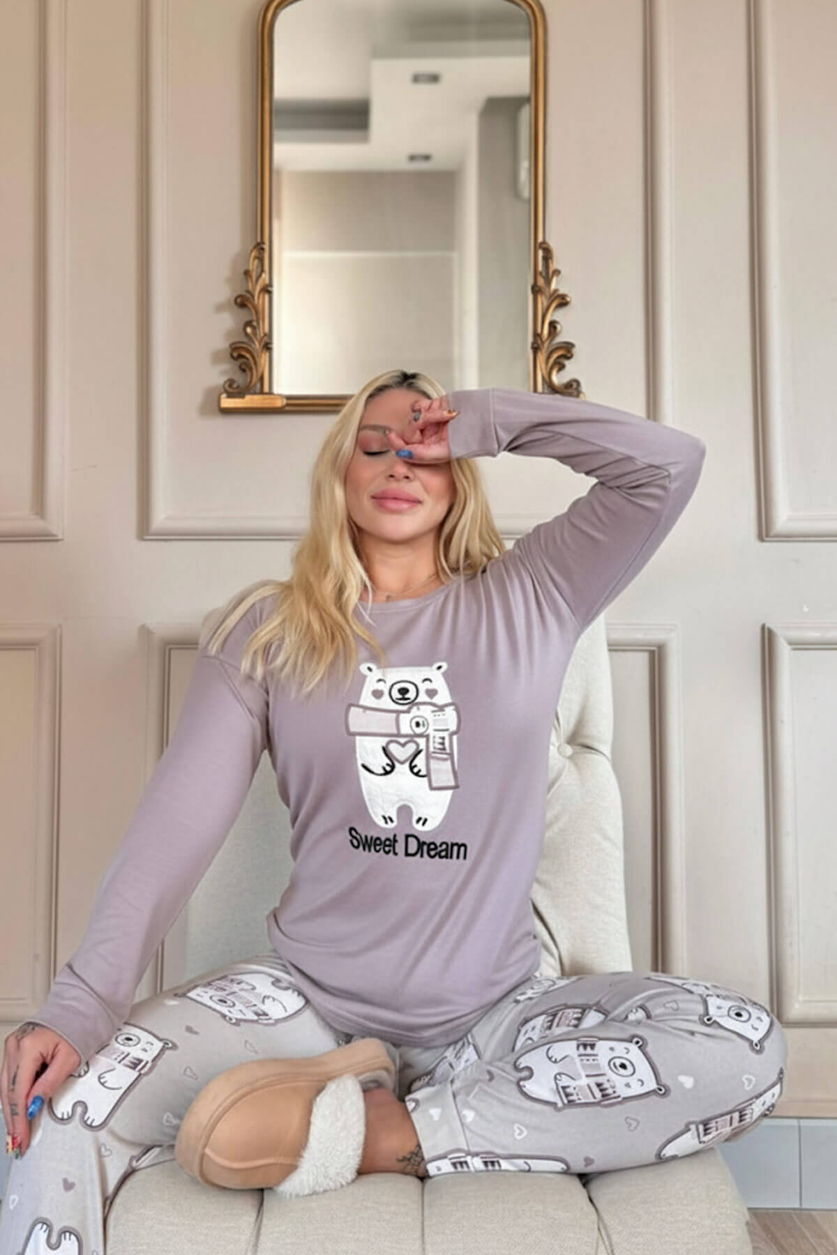 Yumuşak tuşesi sayesinde cilde nazikçe dokunan kumaşı, gün boyu rahat bir his sunarken desenli alt parçalarıyla da enerjik ve modern bir görünüm kazandırır. Sonbahar-kış kullanıma uygun yapısıyla gardırobunuzun vazgeçilmez parçalarından biri olacak.Gündelik ev şıklığı için ideal olan bu pijama takımı, rahatlığı ve tarzı bir arada sunuyor.