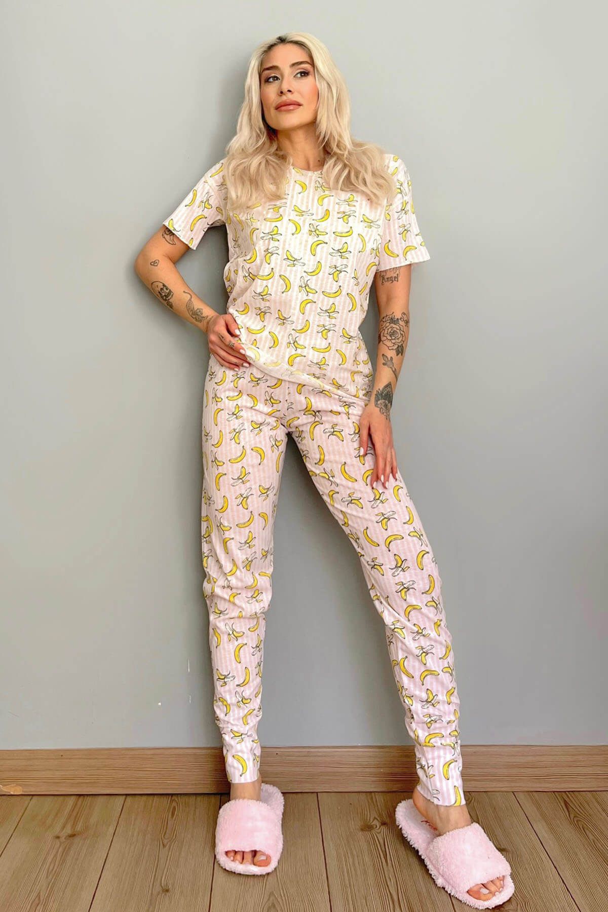 Lokale Banane Baskılı Kısa Kollu Kadın Pijama Takımı