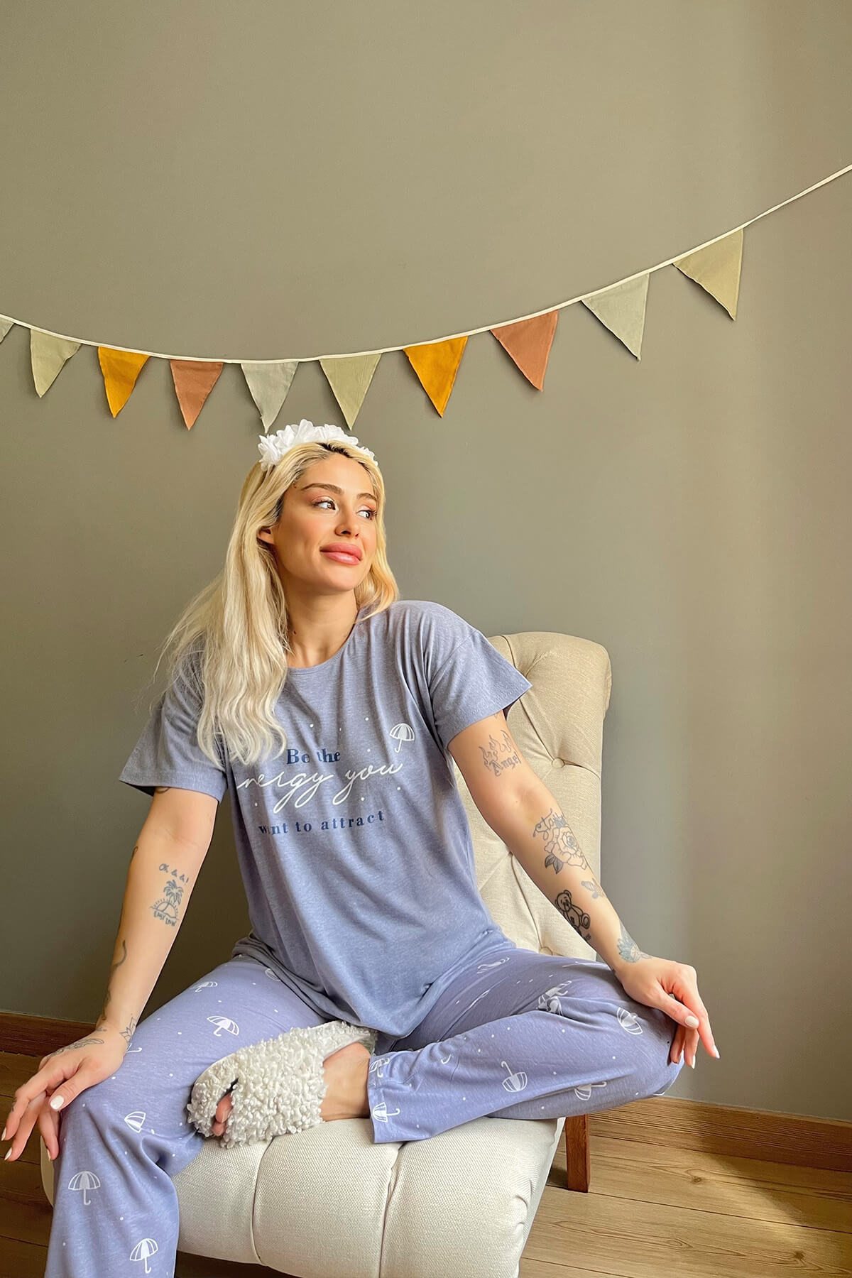 Mavi Energy Baskılı Kısa Kollu Kadın Pijama Takımı