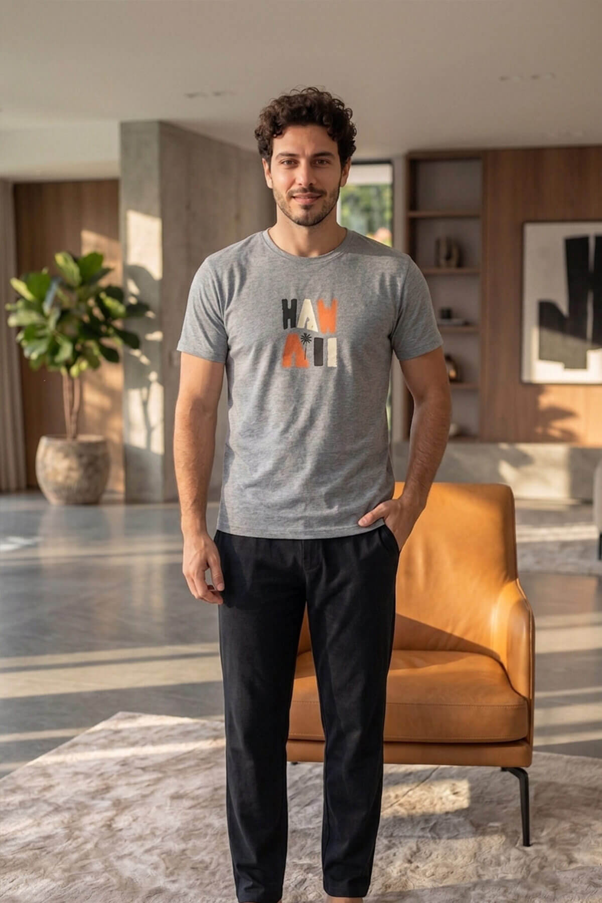 Pamuklu kumaş yapısı sayesinde hava geçirgenliği yüksek olup, yazlık pijama arayan erkekler için ideal bir tercihtir. Ev giyimi ve günlük kullanımda şıklık ve rahatlığı bir arada sunar.