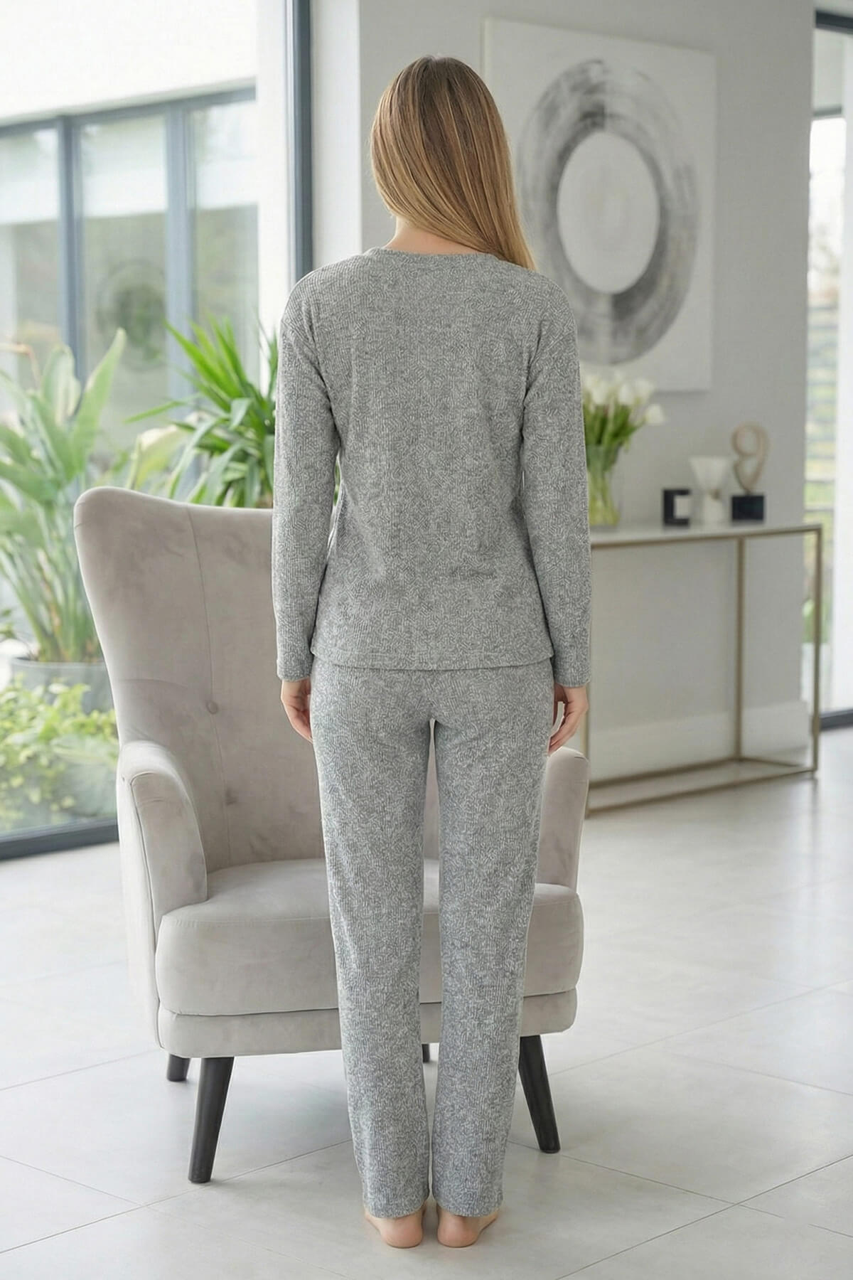 • Yumuşak dokulu kumaşıyla gün boyu konfor sunan kadın pijama takımı, uzun kollu üst ve uzun paça alt tasarımıyla mevsimlik kullanım için idealdir. Regular kesimi sayesinde rahat bir kalıp sunar. Ev giyimi ve uyku için uygundur.