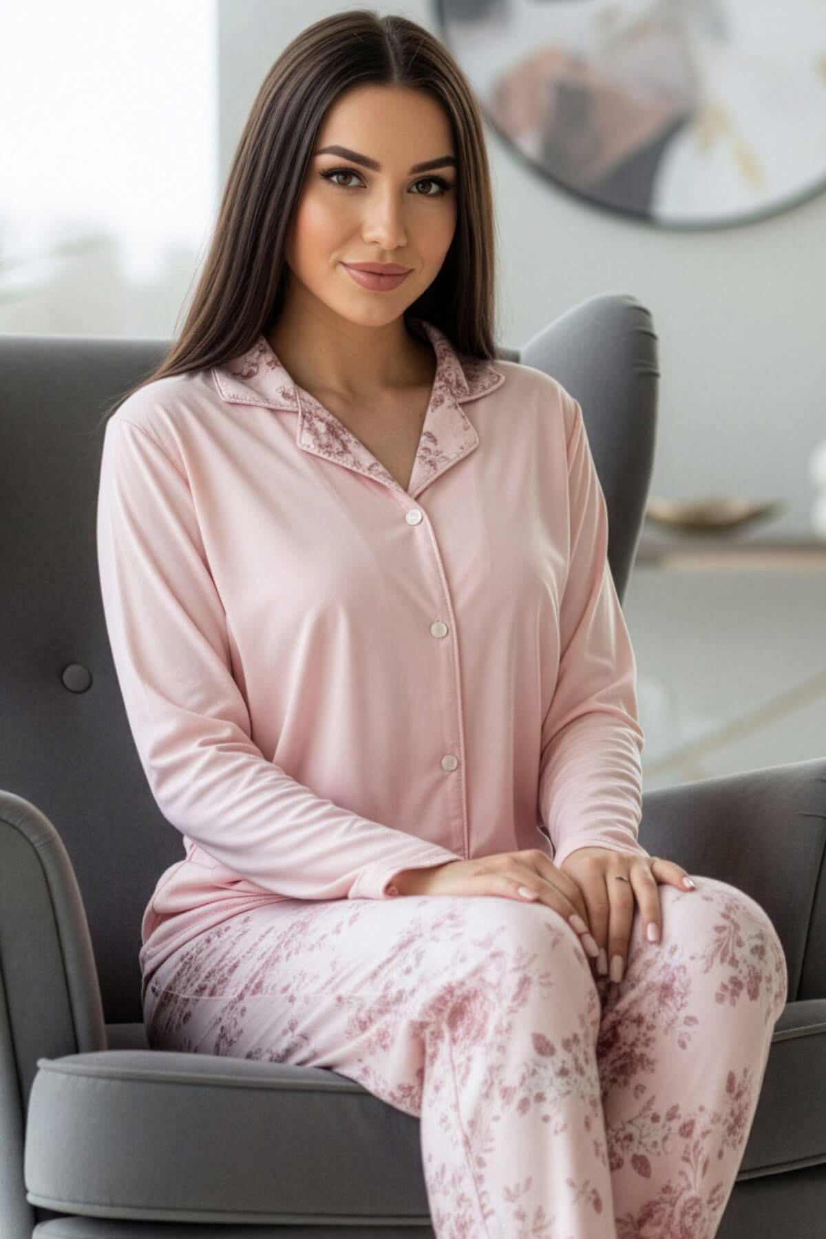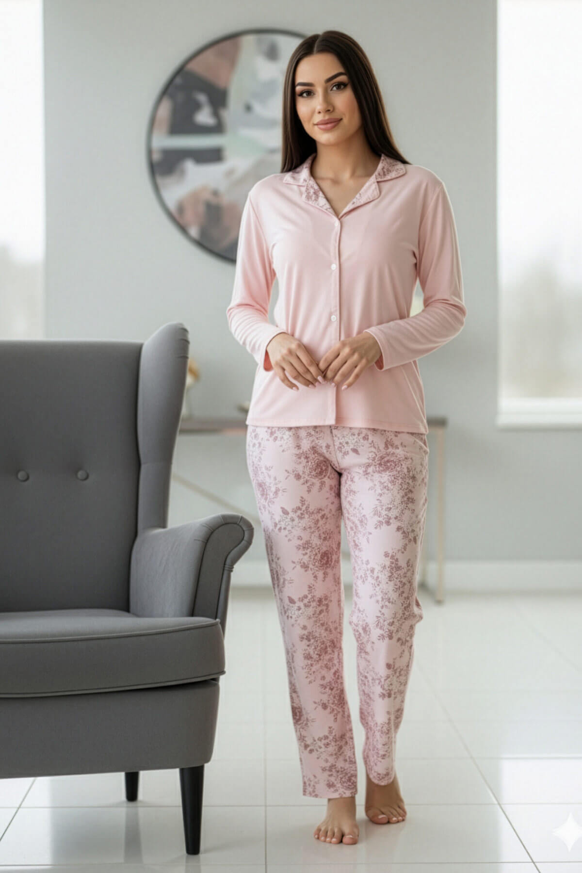 Mercan Florado Exclusive Önden Düğmeli Uzun Kollu Kadın Pijama Takımı