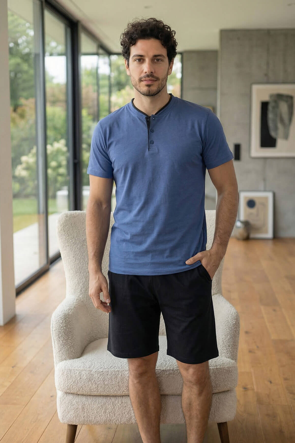 Pijamaevi Premium Erkek Şortlu Pijama Takımı, %100 pamuk kumaşı ve üst düzey işçiliği ile ev giyiminde konforu yeniden tanımlar. Nefes alabilen doğal yapısı sayesinde terletmez, gün boyu ferah ve rahat bir kullanım sunar.