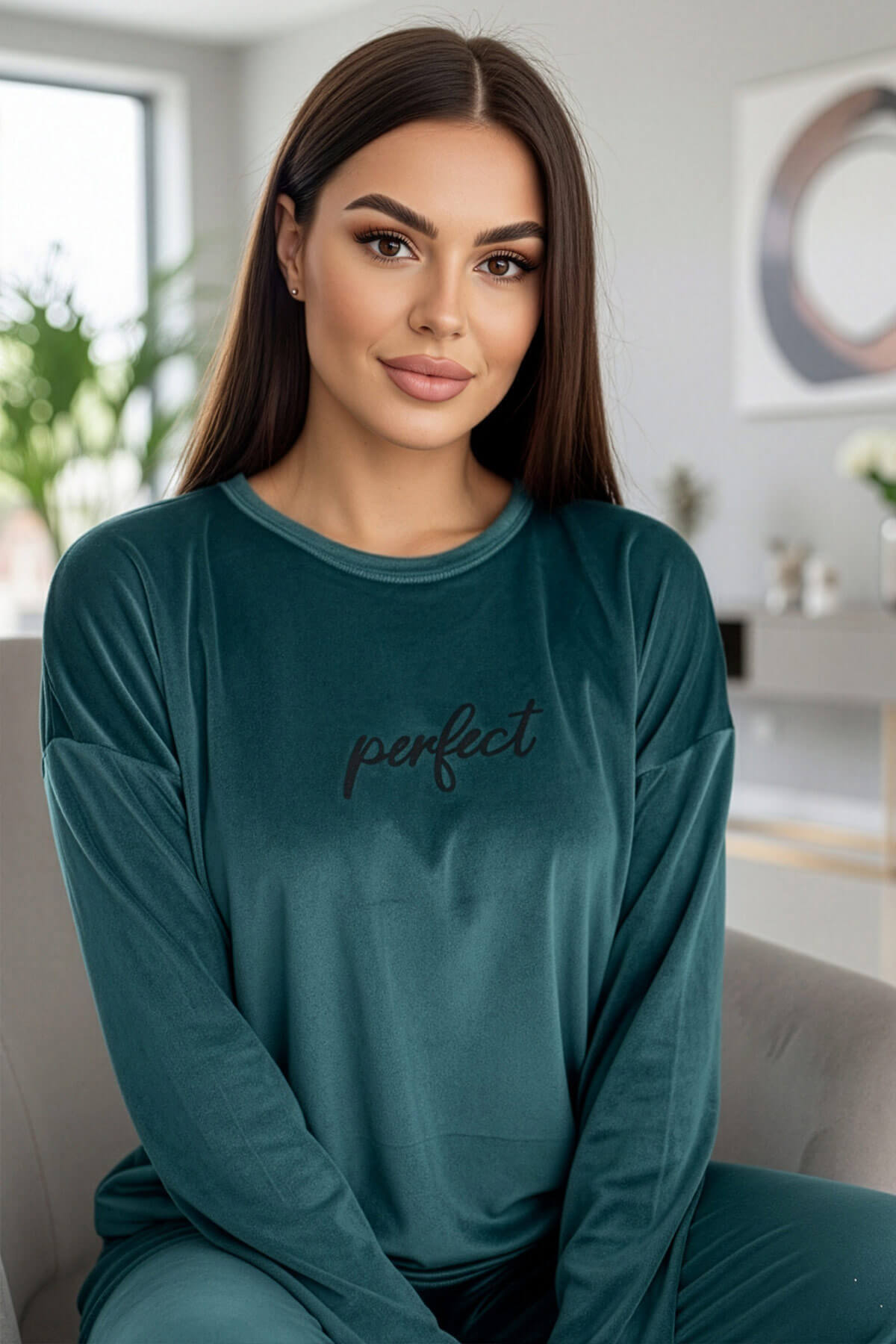 Petrol Perfect Desenli Exclusive Kadife Kadın Pijama Takımı