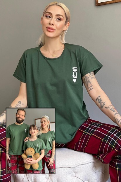 Queen Kısa Kol Sevgili Aile Pijaması - Kadın Takımı