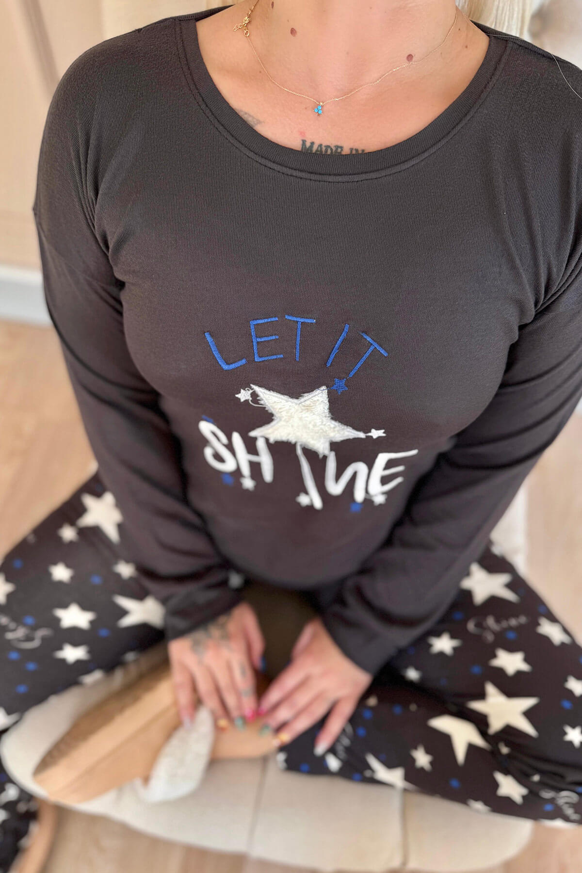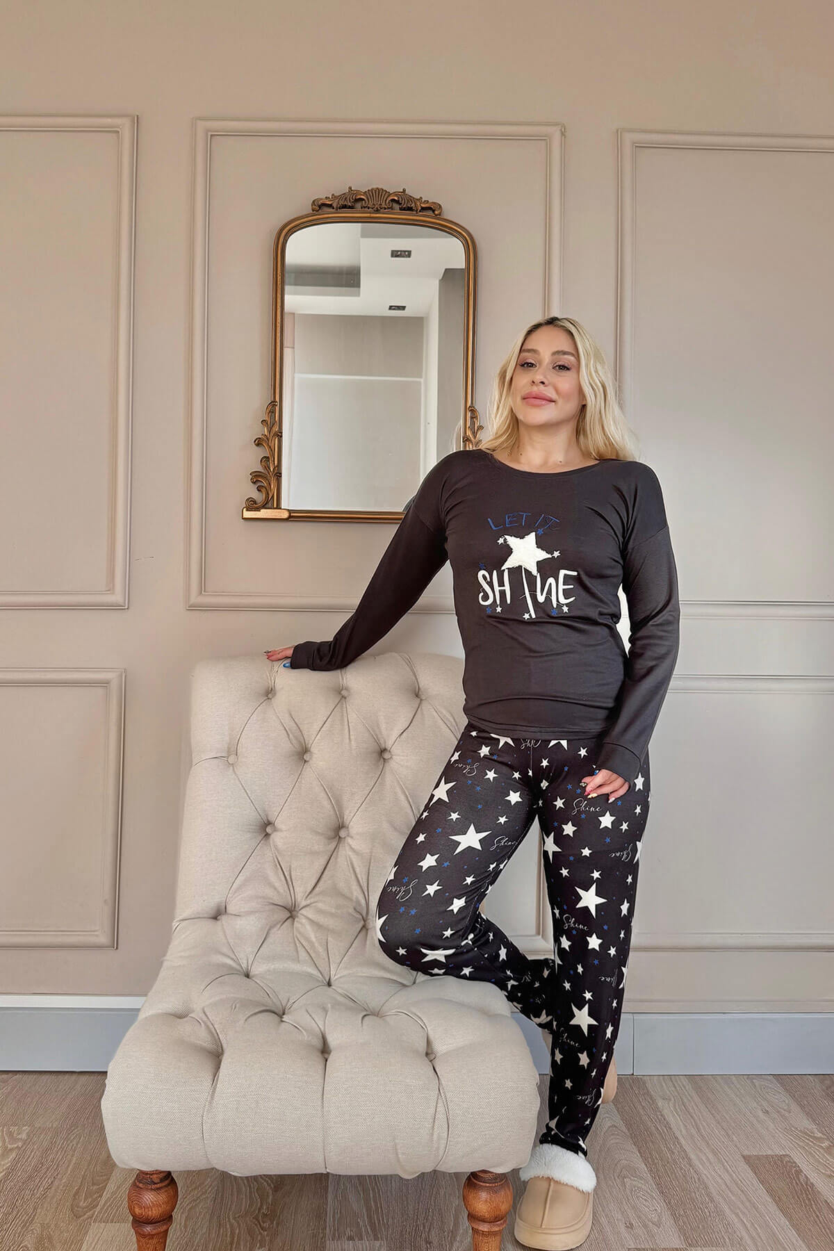 Yumuşak tuşesi sayesinde cilde nazikçe dokunan kumaşı, gün boyu rahat bir his sunarken desenli alt parçalarıyla da enerjik ve modern bir görünüm kazandırır. Sonbahar-kış kullanıma uygun yapısıyla gardırobunuzun vazgeçilmez parçalarından biri olacak.Gündelik ev şıklığı için ideal olan bu pijama takımı, rahatlığı ve tarzı bir arada sunuyor.