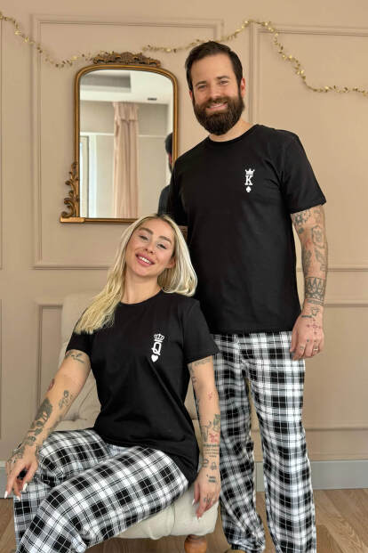 Siyah King Kısa Kol Sevgili Aile Pijaması - Erkek Takımı