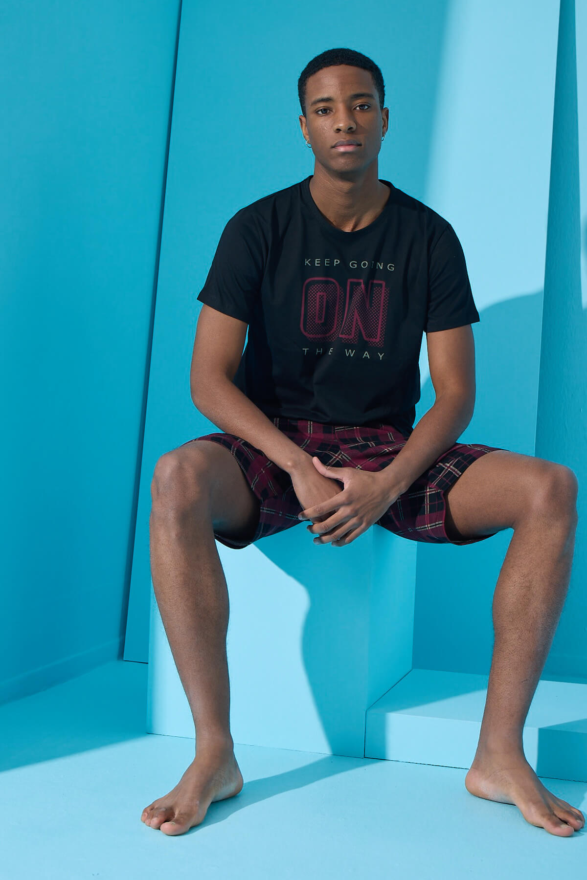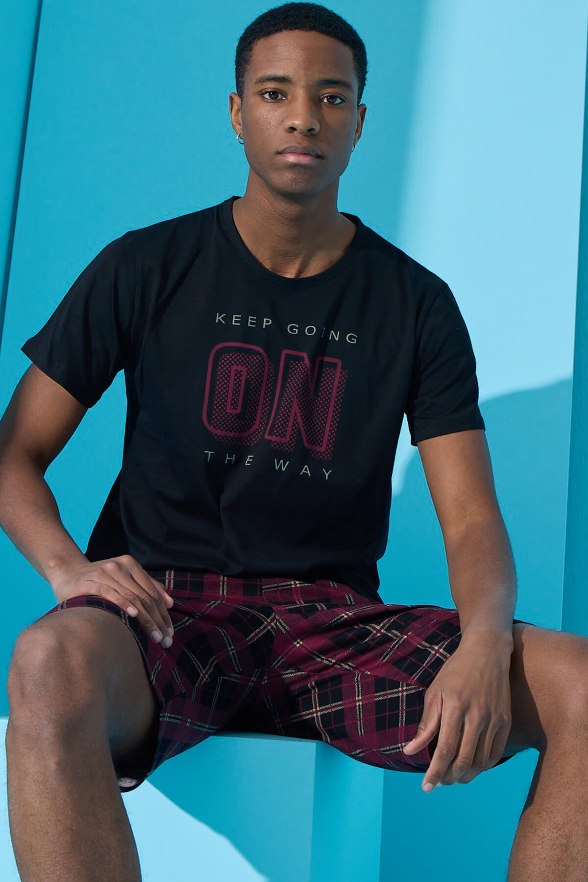 Siyah On Baskılı Şortlu Erkek Pijama Takımı