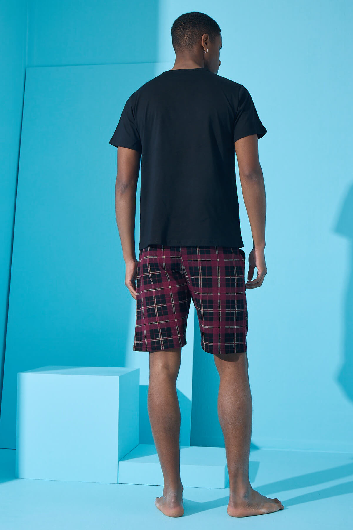 Bordo Just Desenli Kısa Kollu Şortlu Erkek Pijama Takımı