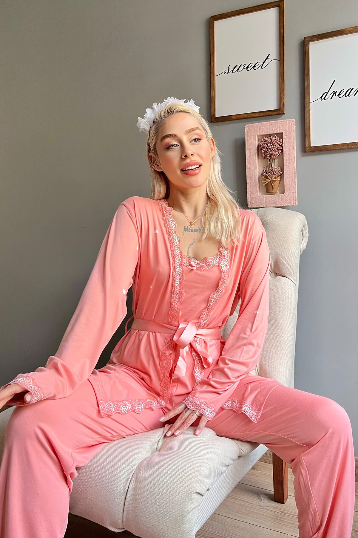 Pudra Dublin Sabahlıklı Kadın Pijama Takımı - Pijamaevi Pudra Dublin Sabahlıklı Kadın Pijama Takımı - Pijamaevi (1) İndirimli Ürünler İndirimli Ürünler