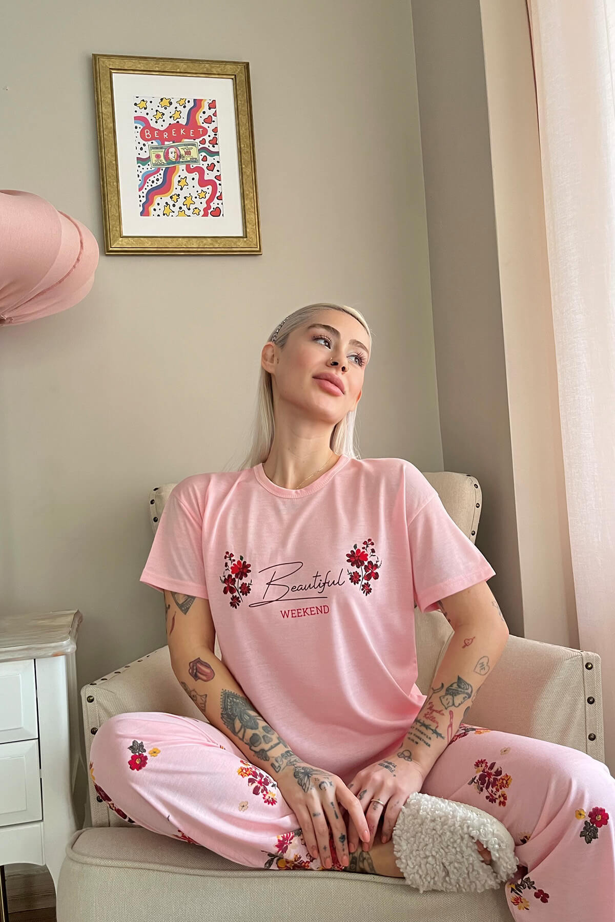 Pudra Positive Desenli Bambu Kısa Kol Kadın Pijama Takımı - Pijamaevi Pudra Positive Desenli Bambu Kısa Kol Kadın Pijama Takımı - Pijamaevi (1) İndirimli Ürünler İndirimli Ürünler