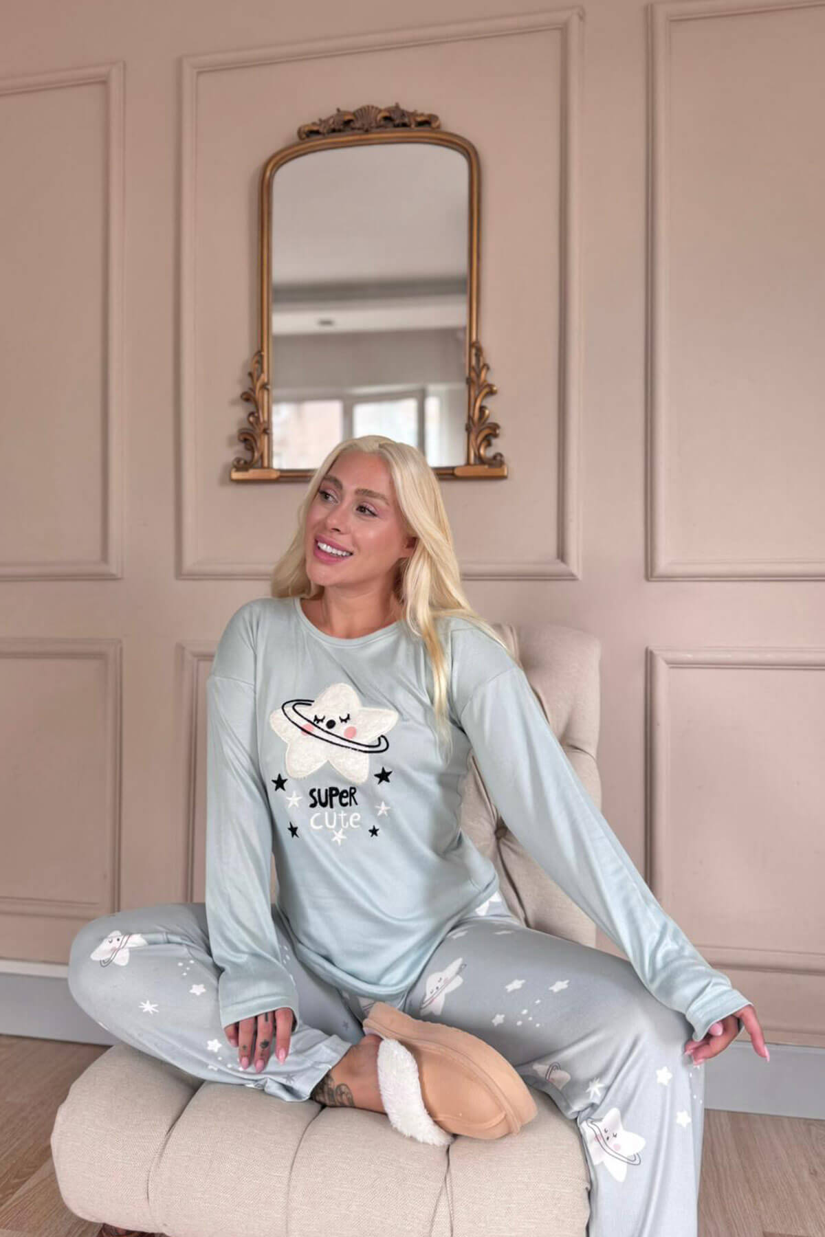 Super Cute Desenli Termal Kadın Pijama Takımı