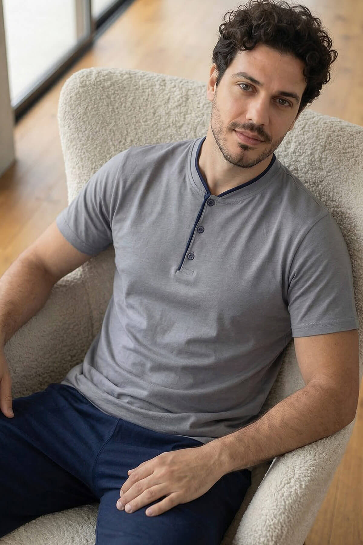Midnight Steel Şortlu Pat Detaylı Elegant Erkek Pijama Takımı - Pijamaevi Midnight Steel Şortlu Pat Detaylı Elegant Erkek Pijama Takımı - Pijamaevi (1) İndirimli Ürünler İndirimli Ürünler