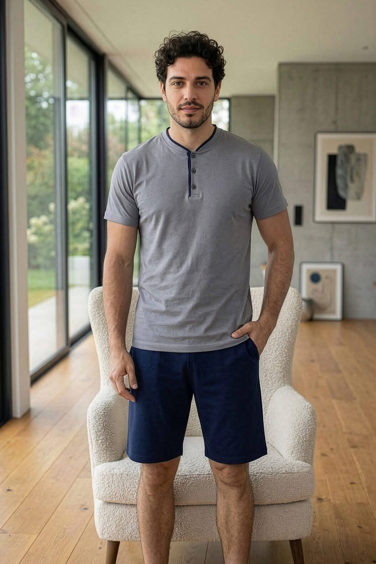 Urban Grey Şortlu Pat Detaylı Elegant Erkek Pijama Takımı
