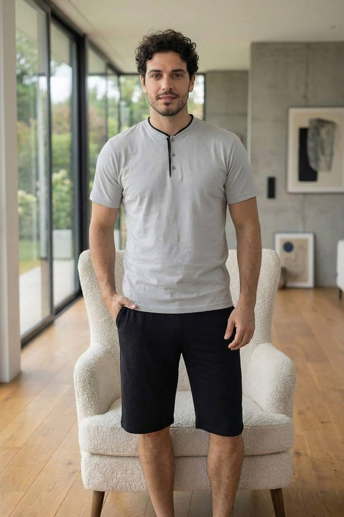 Pijamaevi Premium Erkek Şortlu Pijama Takımı, %100 pamuk kumaşı ve üst düzey işçiliği ile ev giyiminde konforu yeniden tanımlar. Nefes alabilen doğal yapısı sayesinde terletmez, gün boyu ferah ve rahat bir kullanım sunar.