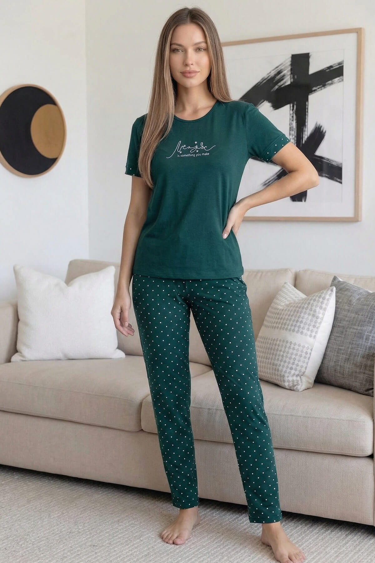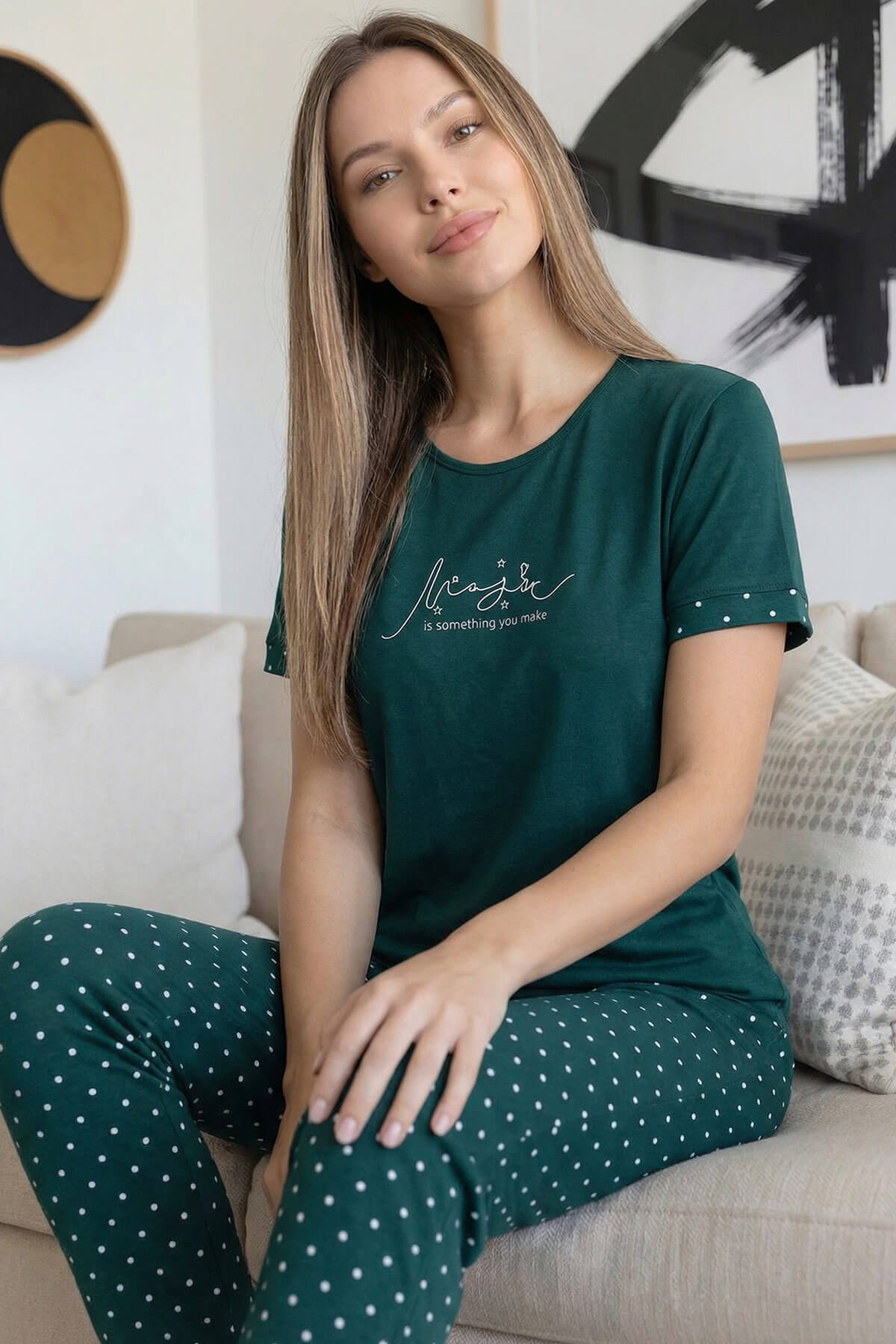 Zümrüt Magic Desenli Bambu Kısa Kol Kadın Pijama Takımı